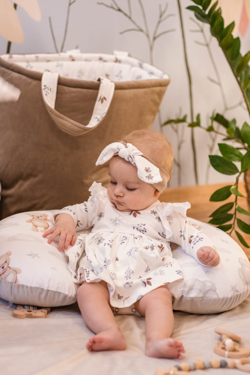 - Sukieneczka nie posiada żadnych niepotrzebnych elementów, które mogłyby uwierać dziecko w pozycji leżącej. Jest pięknym, a zarazem wygodnym ubrankiem.