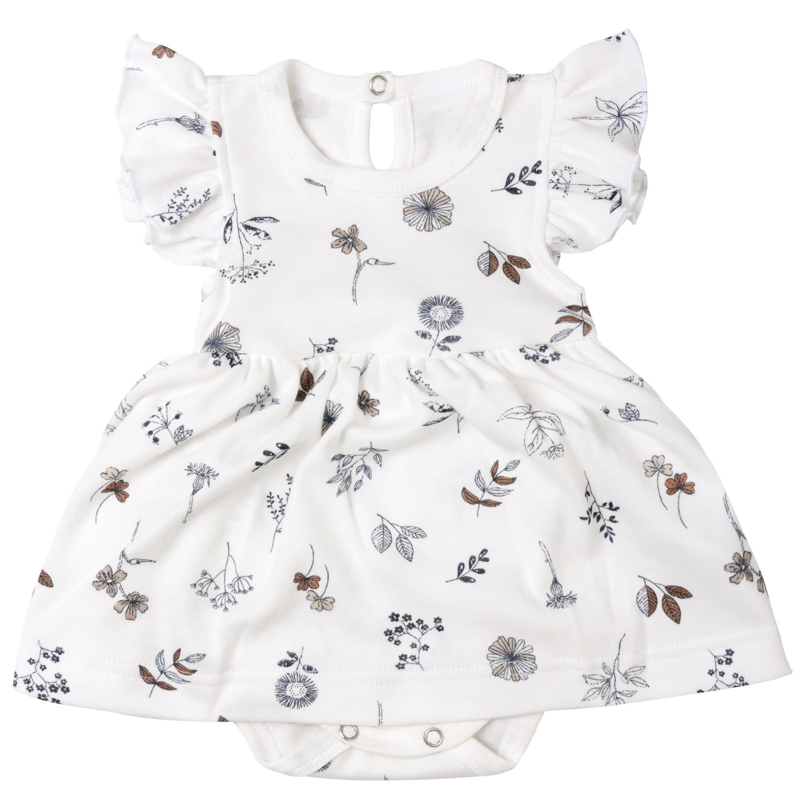 Bawełniana sukienka niemowlęca to połączenie klasycznego, wygodnego body rozpinanego w kroku z doszytą uroczą falbanką.