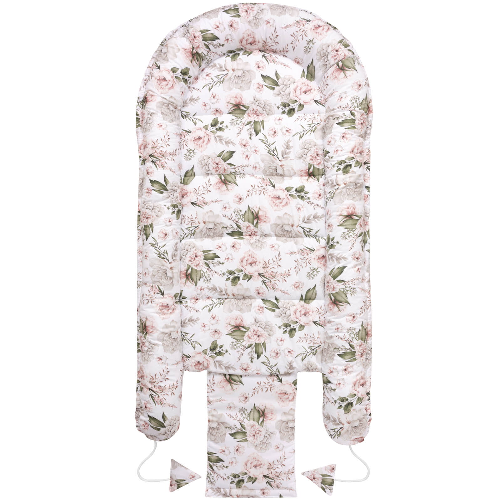 Gniazdko doskonale służy także starszym maluszkom stając się idealną przestrzenią do zabawy, leżenia na brzuszku i pierwszych ćwiczeń – podnoszenia główki czy leżących w jego zasięgu grzechotek. Rozwiązanie sznurków pozwala na używanie kokonu jako przewijaka.