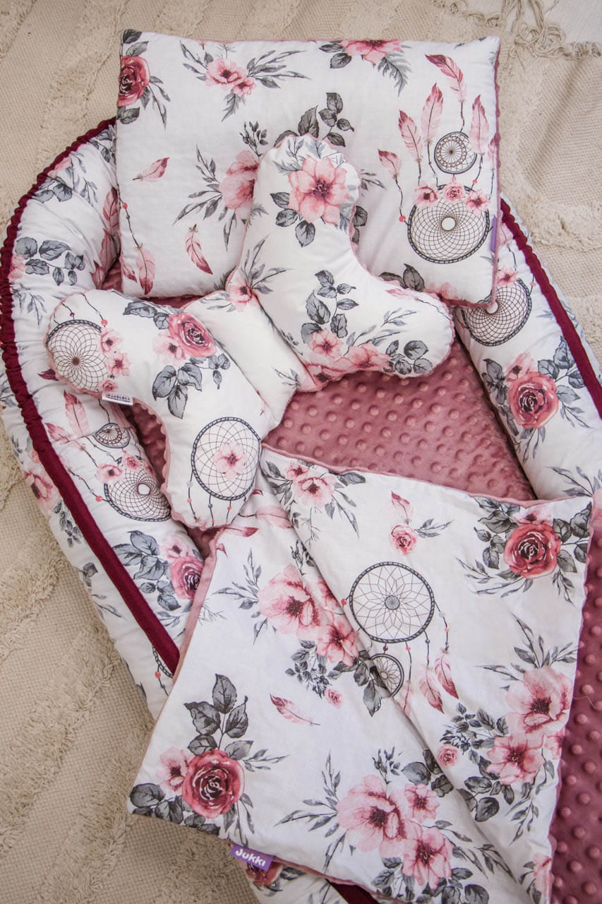 Kokon można skompletować z innymi produktami Jukki – mięciutkimi kocykami Minky, dekoracyjnymi poduszkami, koszami na zabawki – tak, by przestrzeń twojego malucha była harmonijna i tworzyła spójną całość.