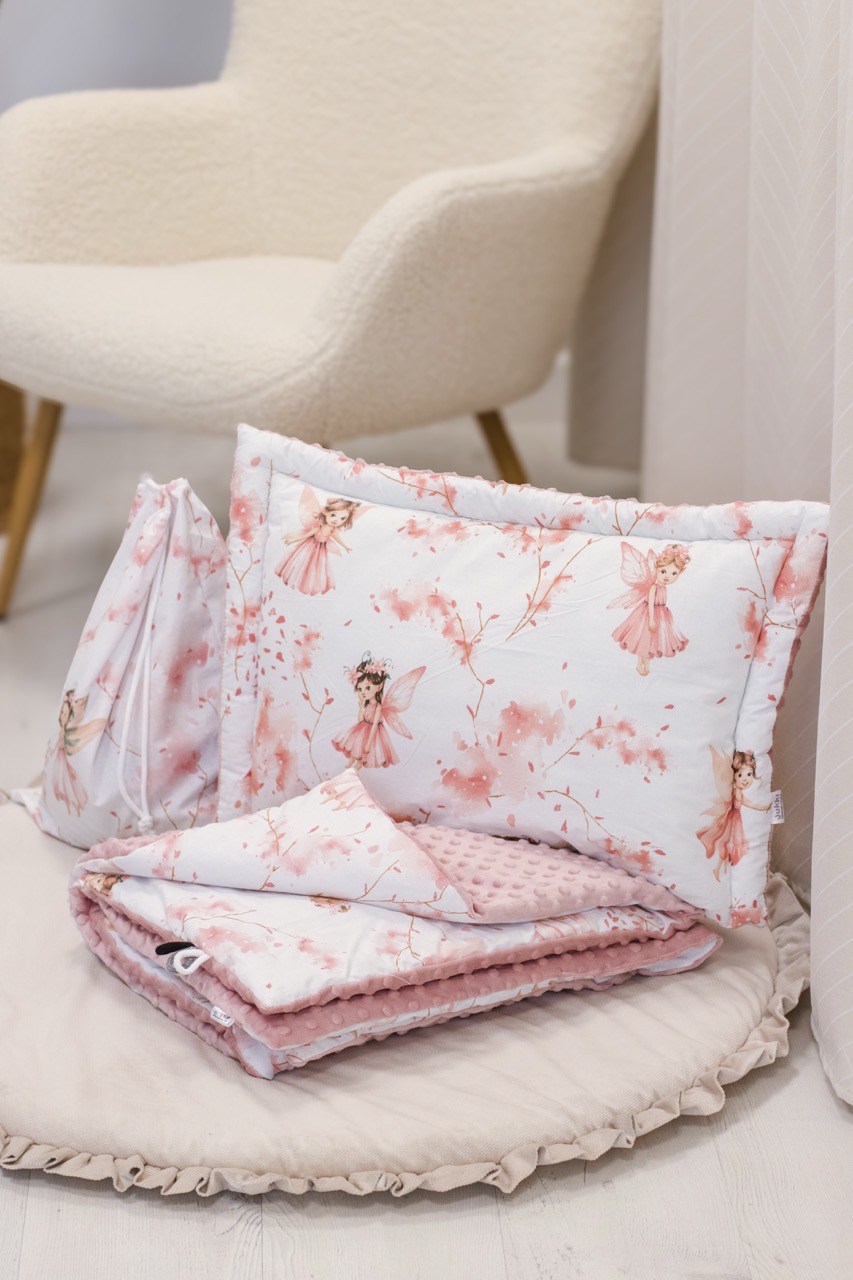 Zestaw przedszkolaka (kocyk z poduszką) - Little Fairy i Old Rose Minky