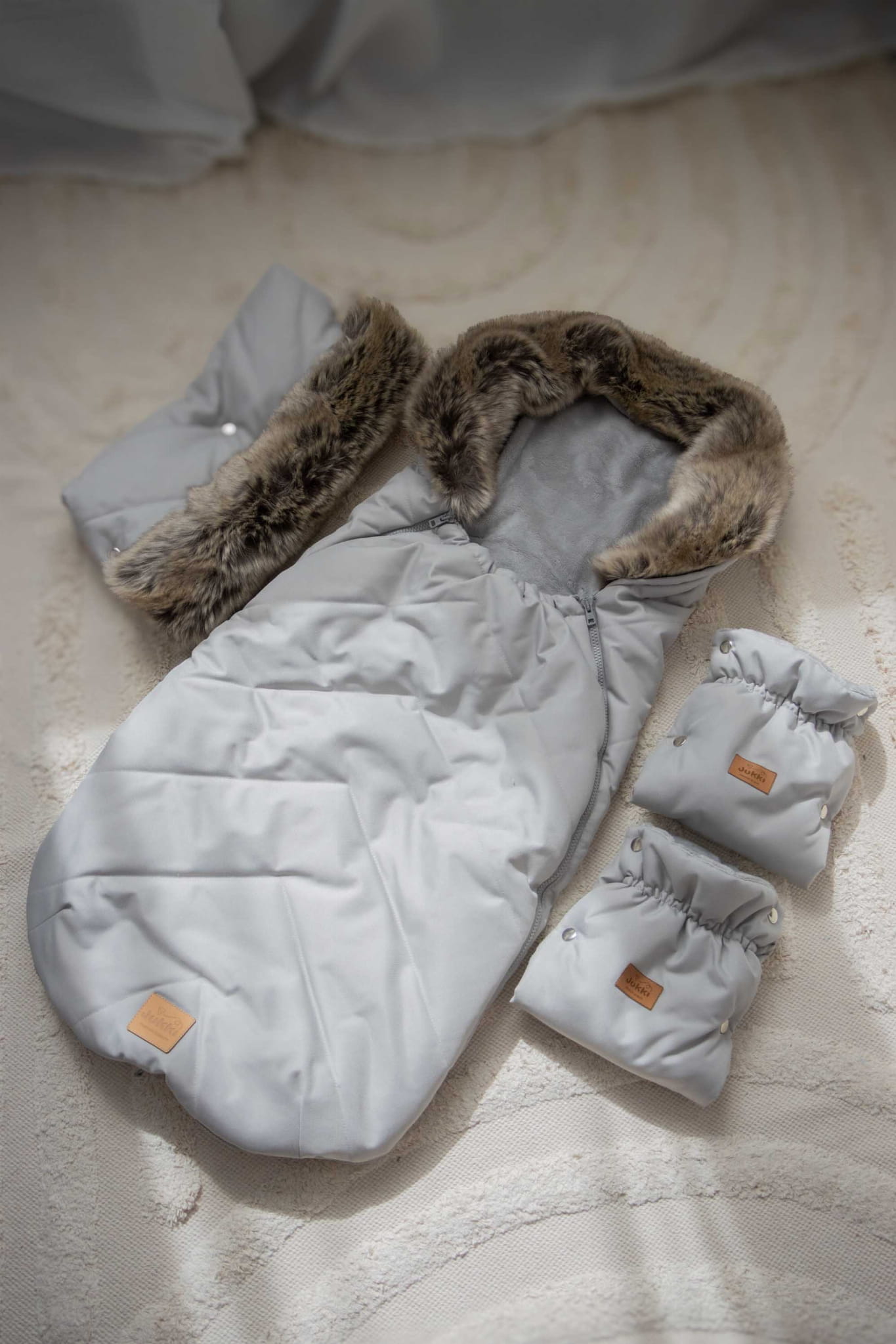 Zimowy śpiworek dziecięcy do wózka, gondoli i sanek - LIGHT GREY WINTER