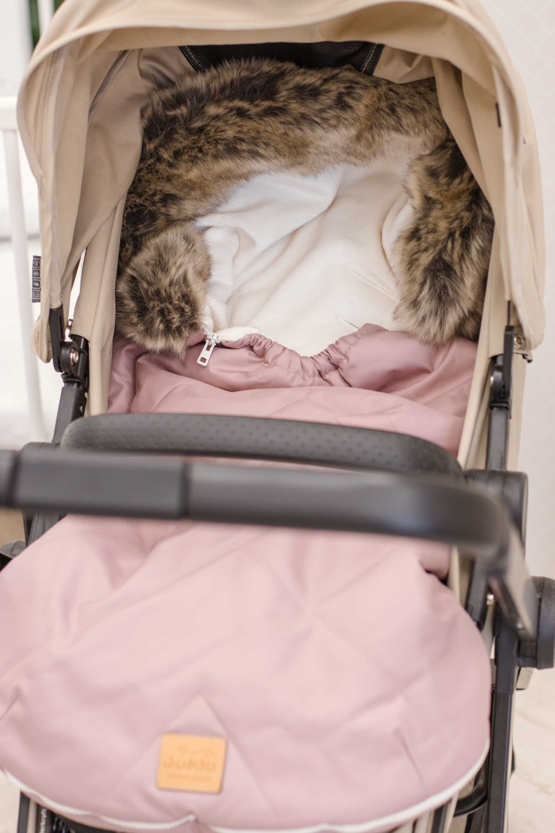 Odpowiednio wykonane wycięcia na pasy pozwalają na montaż w większości wózków spacerowych, wózków typu gondola, nosidełek oraz sanek, dzięki temu jest wszechstronny i uniwersalny.